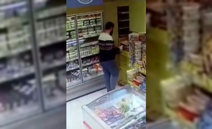 Hırsızlık anları ise marketin güvenlik kamerasına yansıdı.