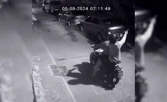 Pendik’te motosikletli iki şahıs, bir apartmana silahla art arda ateş etti. Silahlı şahıs ateş ederken o anları cep telefonu kamerası ile kayda aldı. Saldırı anları güvenlik kamerasına saniye saniye yansıdı.