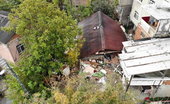 Öte yandan patlamanın etkisiyle çöken bina drone ile havadan görüntülendi.