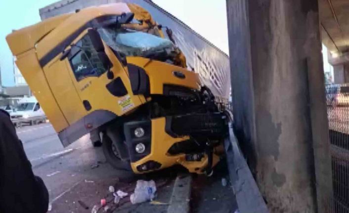 Pendik’te E-5 Karayolu’nda şoförünün direksiyon hakimiyetini kaybettiği tır üst geçide çarptı. Araç içerisinde sıkışarak yaralanan şoför sıkıştığı yerden kurtarılırken, bölgede trafik yoğunluğu oluştu.