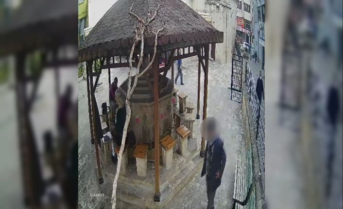 Mersin’de namaz kılmak için cami avlusunda abdest alan şahsın şadırvana astığı ceketinden cüzdanını çalan şüpheli, güvenlik kameralarınca tespit edilerek yakalandı.