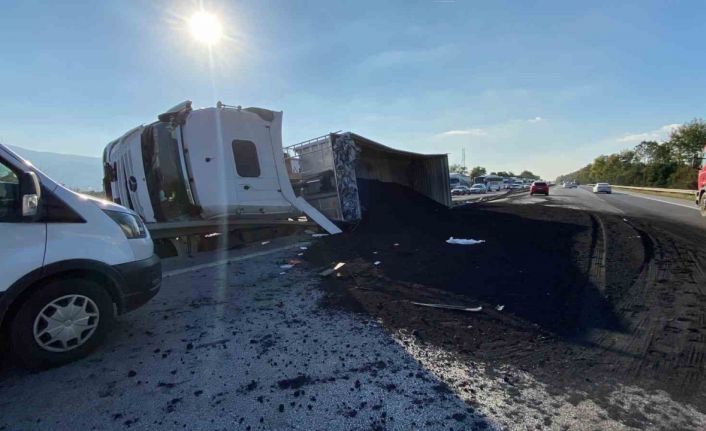 TEM Otoyolu Kocaeli geçişinde petrokok yüklü tır, refüje çarparak yan yattı. 50 metre sürüklenen tırda bulunan sürücü yaralandı. Petrokokun yola dökülmesi nedeniyle Ankara ve İstanbul istikametinde uzun araç kuyrukları oluştu.