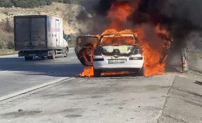 Adana’nın Pozantı ilçesinde otoyolda Peugeot marka otomobil alev topuna döndü.