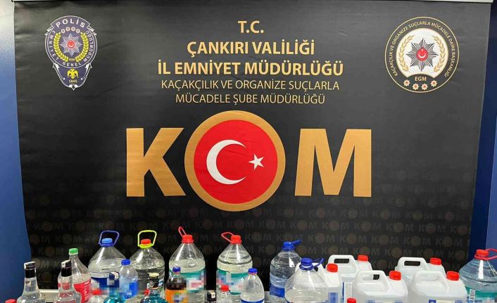 Çankırı’da sahte alkol yaparak piyasaya sürdüğü belirlenen şahsın evine düzenlenen operasyonda, 39,7 litre sahte alkol, 20 litre etil alkol ve alkol aroması ele geçirildi.