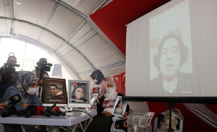Çocuklarının terör örgütü PKK mensupları tarafından dağa kaçırıldığı iddiasıyla HDP Diyarbakır İl Başkanlığı önünde oturma eylemi başlatan ailelerin evlat nöbeti 327’inci gününde devam ederken, aileler, Almanya’da kaçırılan kızı Nilüfer Türemiş için oturma eylemini tek başına sürdüren anne Maide Türemiş’e destek ve yalnız olmadığını göstermek amacıyla telekonferansla görüşme gerçekleştirdi.