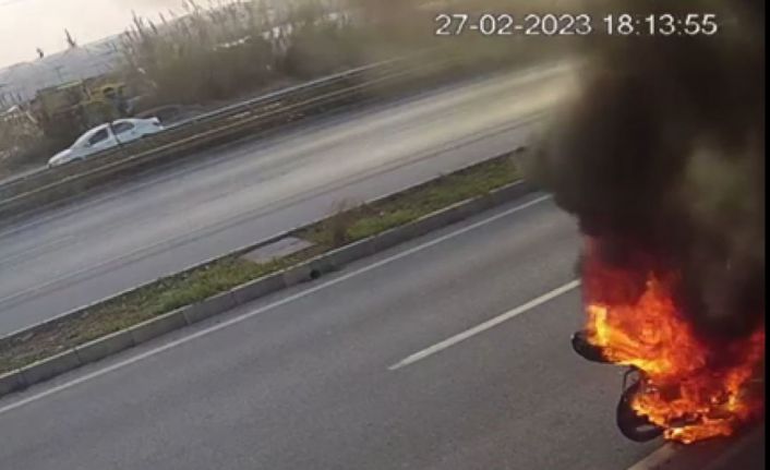 Olay anı, yol kenarındaki işyerinin güvenlik kameralarına yansıdı. Görüntülerde, motosikletle gelen bir kişinin, motosikleti yol kenarına bırakıp gittiği, 1-2 dakika sonra geri dönerek plakasını söküp motosikleti yaktıktan sonra uzaklaştığı görüldü. Motosikletten alevlerin yükseldiğini gören işyeri çalışanları yangın tüpüyle müdahalede bulunsa da motosikletin tamamen yanmasını önleyemedi.