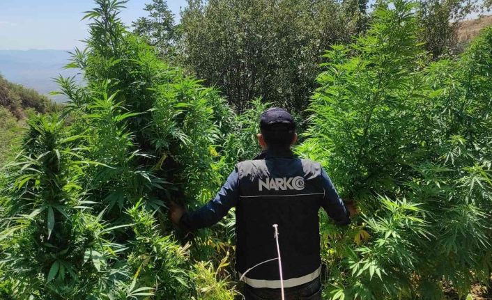 Dağlık alanda ekili olan kenevir bitkileri dron ile görüntülenirken, görüntüde makilerin arasında ekili olan kenevir bitkileri polis ekiplerince sökülerek emniyete götürüldü.