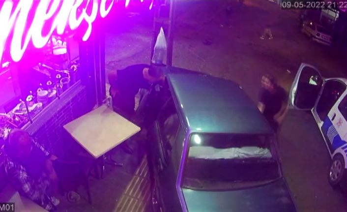 Görüntülerde; otomobilin hızla direğe çarptığı ve polis ekiplerinin sürücüyü yakaladığı görüldü. Bir diğer görüntü de ise yolda yürüyen 4 kişilik aile otomobilin altında kalmaktan son anda kurtuldu.