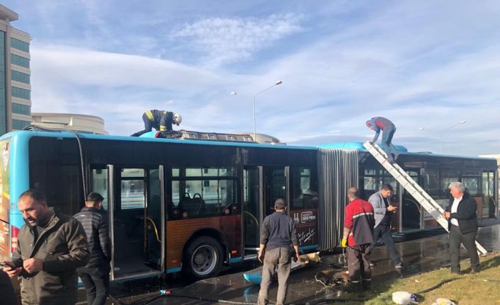 Erzurum’da seyir halinde olan bir otobüs aniden motor kısmından alev aldı. Yanmaya başlayan otobüse bir polis memuru canını hiçe sayarak müdahale etti.