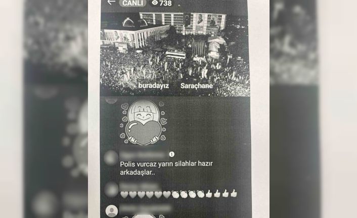 Edinilen bilgiye göre, Siber Suçlarla Mücadele Şube Müdürlüğü ve Güvenlik Şube Müdürlüğünce koordineli olarak sosyal medya platformları üzerinden ’Halkı Kin ve Düşmanlığa Tahrik ve Suç işlemeye Tahrik’ suçları kapsamında yapılan provokatif paylaşımlarla ilgili çalışma gerçekleştirildi. Yapılan çalışmalarda; ’Polis vuracağız yarın silahlar hazır arkadaşlar’ şeklinde sosyal medyada paylaşım yapan O.K. (43) tespit edilerek gözaltına alındı. Ayrıca tespiti yapılan Ç.A., A.K., M.M.T., C.Ö., V.Y.Ç., A.C.A., S.K, T.F. yakalanarak haklarında ’Halkı Kin ve Düşmanlığa Tahrik’ suçlarından gerekli adli işlemler başlatıldı.