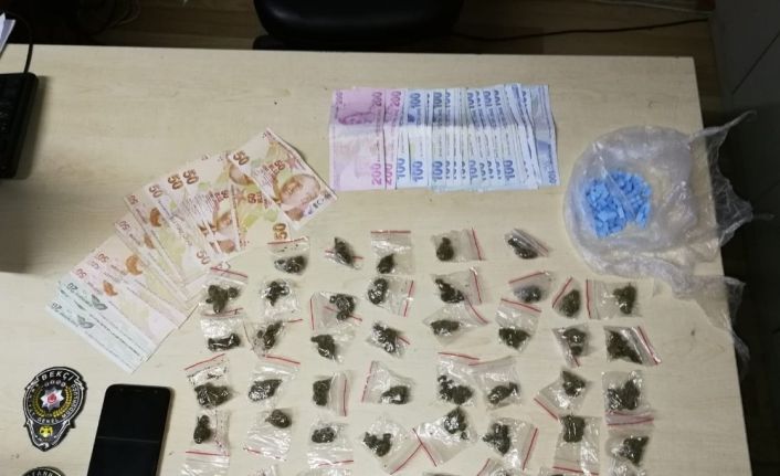 Ataşehir’de ise Küçükbakkalköy Mahallesi Kayışdağı Caddesi üzerinde bulunan bir şantiye önünde meydana gelen trafik kazası sonrasında kazaya karışan motosikletin plakasız ve başka bir şahsa ait olduğu, motosikletin açık olan sele kısmında sarılı halde paketlerin bulunduğu görülmesi üzerine motosiklet sürücüsü şüpheli Furkan Ş.(19) isimli şahsın üstü ve motosiklet arandı. Aramalarda 53 adet poşetlere sarılı halde toplam 57,4 gram gelen Marihuana, 118 adet ekstasy hap, 4 bin 30 TL para, 1 adet cep telefonu ele geçirildi. Furkan Ş. isimli şahsa 1593 sayılı Umumi Hıfzıssıhha Kanunu’nun 282. Maddesi gereğince 20 yirmi yaş altı olması ve sokağa çıkma yasağı bulunmasından dolayı 3 bin 180 TL idari para cezası uygulandı. Ayrıca sürücü belgesiz araç kullanmaktan 2 bin 473 TL, plakasız motosiklet kullanmaktan 2 bin 81 TL ve araç sahibine 2 bin 473 TL para cezası uygulandı. Adli makamlara sevk edilen şahıs tutuklanarak Ceza İnfaz Kurumuna teslim edildi.