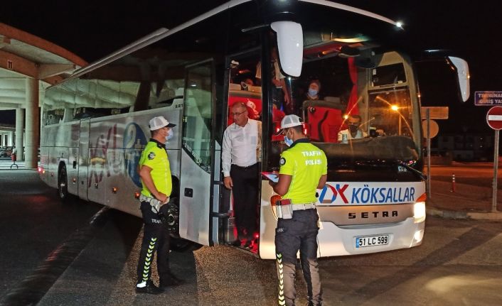 DÜZCE(İHA) – Son günlerde meydana gelen otobüs kazalarının ardından Düzce’de önlemleri arttıran İl Emniyet Müdürlüğü Trafik Tescil ve Denetleme Şube Müdürlüğü ekipleri, gece yolculuğu yapan otobüslere yönelik denetim yaparak yolcuları emniyet kemeri takmaları konusunda uyarılarda bulundu.