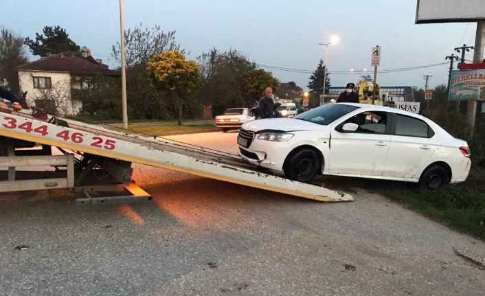 Düzce il Emniyet Müdürlüğü ekiplerinin dur ihtarına uymayarak kaçan otomobil sürücüsü, otomobilin direksiyon hakimiyeti kaybedince kanala uçtu. Polis ekipleri tarafından otomobilde bulunan 3 kişi çıkartılırken, araçta yapılan aramada ruhsatsız silah ve uyuşturucu madde ele geçirildi.