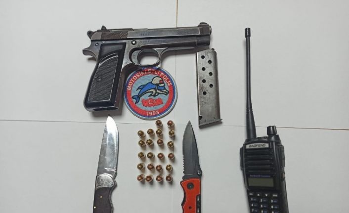 Ayrıca gözaltına alınan 4 şüphelinin içerisinde bulunan araçta yapılan aramada ise, 1 adet ruhsatsız tabanca, 22 adet fişek, 2 adet kesici alet ile polis frekansına ayarlı telsiz ele geçirildi. Şüphelilerin emniyetteki sorgusunun devam ettiği öğrenildi.