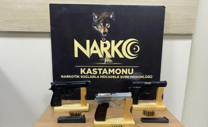 Edinilen bilgiye göre, Kastamonu İl Emniyet Müdürlüğü Narkotik Suçlarla Mücadele Şube Müdürlüğü görevlilerince Kastamonu’da bulunan park-bahçeler, metruk binalar, şüpheli şahıslar ve araçlar üzerinde kontroller yaptı. Kontroller sırasında şüphelenerek durdurulan bir aracın stepne bölümünde zulalanmış şekilde 3 adet ruhsatsız tabanca ve bu tabancalara ait 47 adet fişek ele geçirildi. Olayla ilgili 1 şahıs gözaltına alındı.