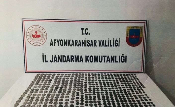 Afyonkarahisar’da jandarma tarafından gerçekleştirilen operasyonda iki şahıs yanlarındaki poşete koydukları 594 adet tarihi sikke ile yakalandı.