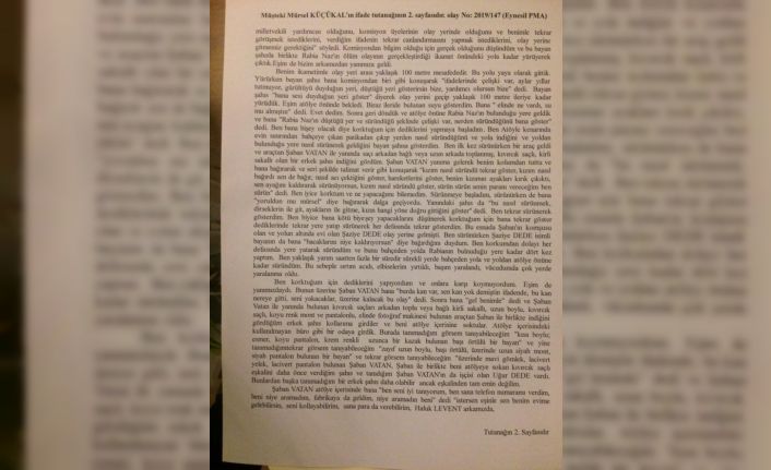 Küçükal, emniyetteki ifadesinde, Şaban Vatan’ın kendisine, “istersen eşinle sen benim evime gelebilirsin seni koruyabilirim sana para da verebilirim Haluk Levent arkamızda Koskoca Haluk Levent arkamızda meclis üyeleri de arkamıza arkamda kuvvetli paradan sıkıntı olmaz’ dediğini söyledi.