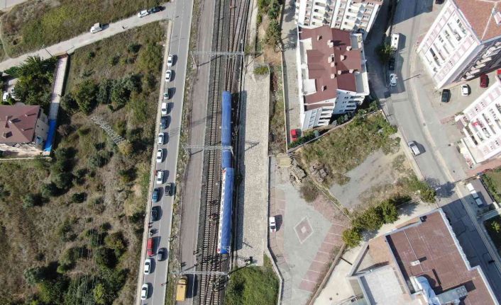 Tren kazasında meydana gelen hasar ise havadan görüntülendi.
