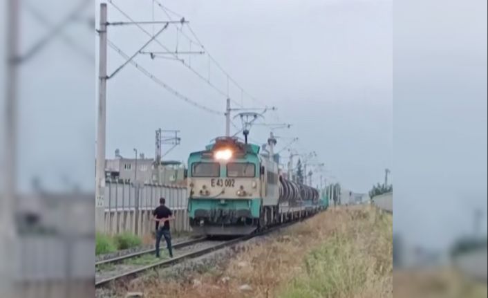 Adana’da kimliği belirlenemeyen bir kişi, demiryoluna çıkarak yük treninin önünü kesti. Tren son anda dururken, şahıs yürüyerek bölgeden ayrıldı.