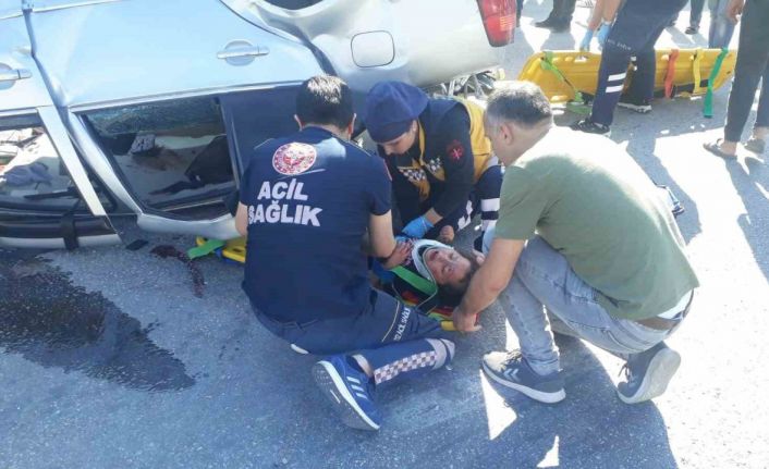 Refüje çarpan otomobil takla attı: 5 yaralı