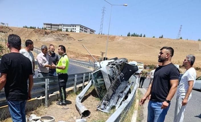 Siirt’te takla atarak refüje çıkan otomobilin sürücüsü kazayı yara almadan atlattı.