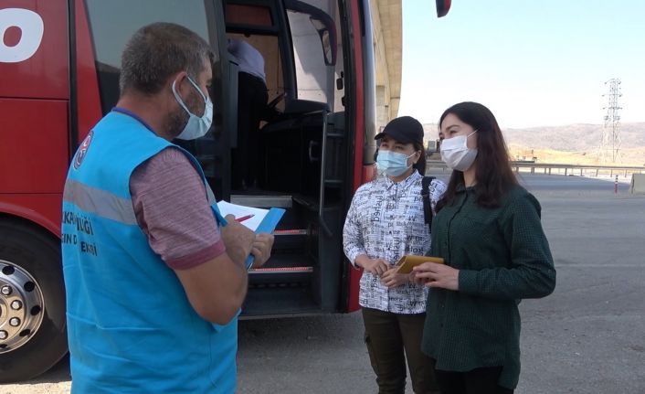 Çorum’dan Ankara’ya giden yolcu otobüsü, Kırıkkale’de trafik kontrol noktasında durduruldu. Jandarma ekiplerince Covid-19 tedbirleri kapsamında sürücü ve yolcuların HES kodu sorgulaması yapıldı. Otobüste seyahat eden yabancı uyruklu Shakıra Noorıe’nin (23) PCR testinin pozitif, kardeşi Saliha Noorıe’nin (21) ise temaslı olduğu tespit edildi. Jandarma, durumu İl Salgın Denetim Merkezi ekiplerine bildirdi. Trafik kontrol noktasına gelen filyasyon ekipleri, karantina kuralını ihlal eden iki kardeşe 4 bin 50’şer lira ceza yazdı. HES kodu sorgulamadan otobüse yolcu kabul eden firmaya da 8 bin 100 lira idari para cezası uygulandı. Firma personeli ise cezai işlem uygulanırken kameralara poz verdi.