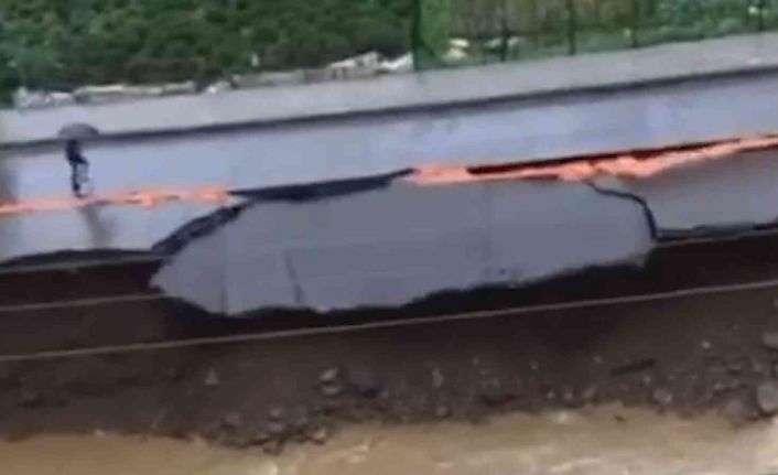 Rize’nin Çayeli ilçesinde bir vatandaş yolun çöktüğünü fark ederek dere yatağına düşmekten son anda kurtuldu.