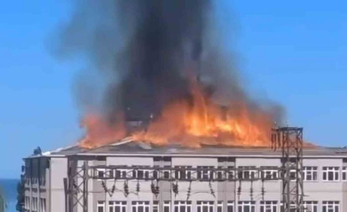 Rize’nin Çayeli ilçesinde boşaltılan bir binanın çatısında çıkan yangın paniğe yol açtı.