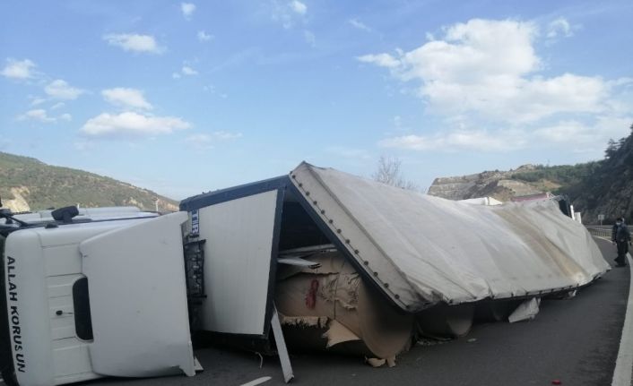 Bilecik’in Osmaneli ilçesinde rulo kâğıt yüklü tır devrilmesi sonucu yaralanan olmazken trafik bir süre aksadı.