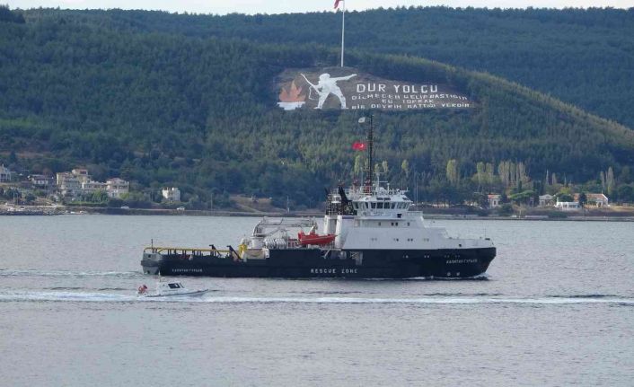 Marmara Denizi’nden bugün saat 09.15’te Çanakkale Boğazı’na giriş yapan Rus Donanması’na bağlı ’SB-739’ borda numaralı askeri römorkör, Nara Burnu’nu döndükten sonra saat 11.15 sıralarında Çanakkale önlerine vardı. ’Dur Yolcu’ sembolü ve Kilitbahir Kalesi önünden geçen Rus askeri römorkörü, Ege Denizi’ne doğru yol aldı.