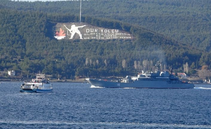 Rus donanmasına ait 142 borda numaralı ’Novocherkassk’ adlı savaş gemisi, Türk sahil güvenlik botu refakatinde Çanakkale Boğazı’ndan geçerek, Marmara Denizi’ne doğru yol aldı.