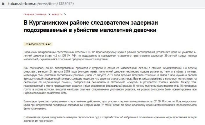 Rusya’da öldürülen kadınların genelde 30 ile 40 yaşları arasında olduğu sivil toplum örgütleri tarafından da kaydedilirken Rus basınında yayınlanan haberlere göre cinayete kurban giden en genç kişi 4 yaşındaki bir kız çocuğu oldu. Kayıtlara ‘kadın cinayeti’ olarak geçen habere göre Rusya’nın Krasnodar Bölgesi’nde geçtiğimiz yıl Ağustos ayında 35 yaşındaki bir baba 4 yaşındaki kız çocuğuna şiddet uygulayarak öldürdü. En yaşlı kadın cinayeti ise Rusya’ya bağlı Mari El Cumhuriyeti’nde kaydedildi. 91 yaşındaki bir kadın, erkek yeğeni tarafından dövülerek öldürüldü. Cinayeti işleyen yeğen 13 yıl 1 ay hapis cezası aldı.