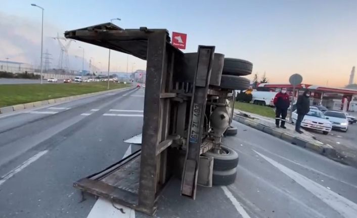 Zonguldak’ın Ereğli ilçesinde sac yüklü kamyon sürücüsünün direksiyon hâkimiyetini kaybetmesi sonucu yan yattı.