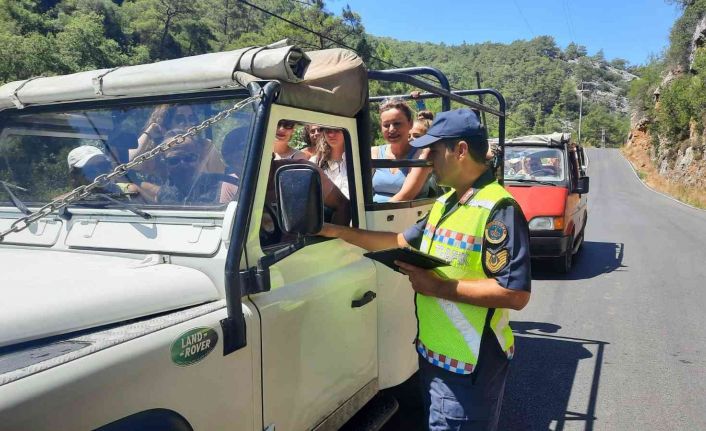 Antalya’nın doğal güzelliklerini görmek isteyen yerli ve yabancı turistlerin yoğun olarak talep ettikleri safari araçları jandarma ekipleri tarafından denetlendi.