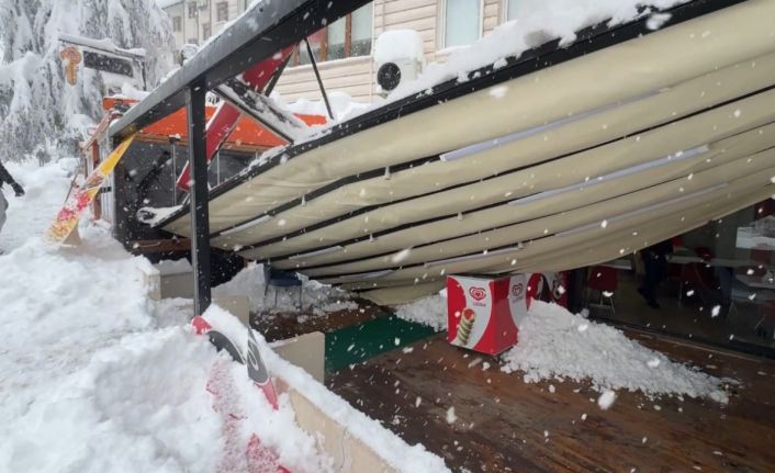 Olay, Sadri Artunç Caddesi’nde meydana geldi. Yoğun kar yağışının ardından biriken karın ağırlığına dayanamayan iş yerlerine ait çatı ve tenteneler çöktü.