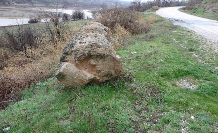 Malatya’nın Akçadağ ilçesinde sağanak yağış sonrası oluşan heyelanda yamaçlardan kopan dev kaya parçaları yollara düştü.