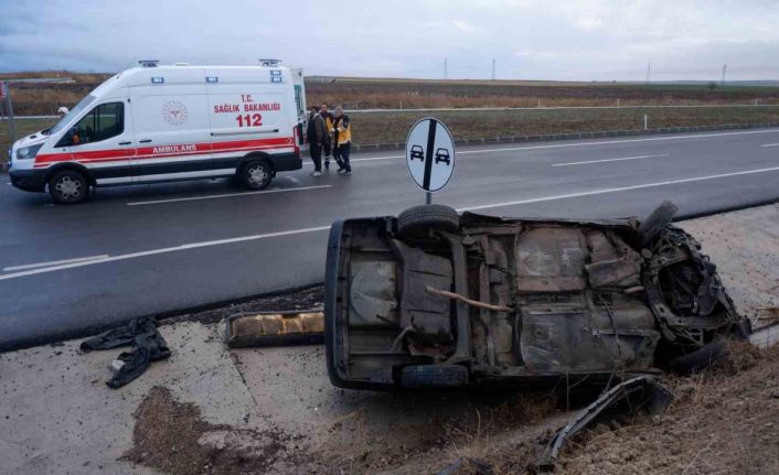 Edirne’de sağanak yağışın etkisiyle kayganlaşan yolda sürücünün direksiyon hakimiyetini kaybetmesi sonucu yan yatan otomobildeki 3 kişi yaralandı.