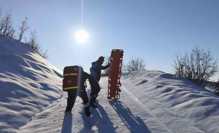 Diyarbakır’da UMKE ekibi, jandarmayla birlikte 1,5 kilometrelik zorlu yolu yürüyerek hastaya ulaştı.