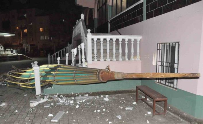 Manisa’nın Salihli ilçesinde akşam saatlerinden itibaren etkili olan şiddetli rüzgar nedeniyle ilçe genelinde 100’den fazla ağaç devrilirken, bir caminin minaresine ait külah cami bahçesine uçtu.
