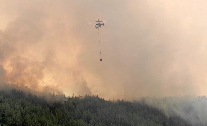 Sıcak hava ve rüzgarın etkisiyle hızla ilerleyen alevlere, ekiplerin dört koldan müdahalesi sürüyor.