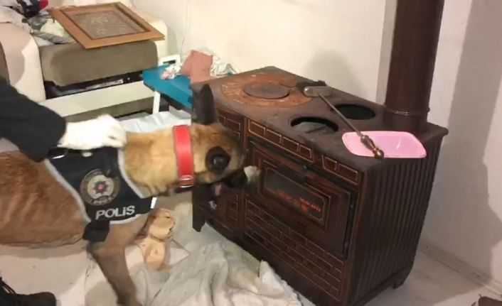 Samanlık ve soba içindeki uyuşturucu zulasını narkotik köpeği patlattı