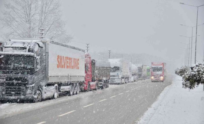 Samsun’da etkili olan kar yağışı sebebiyle tır, kamyon ve tankerlerin geçişine izin verilmedi.