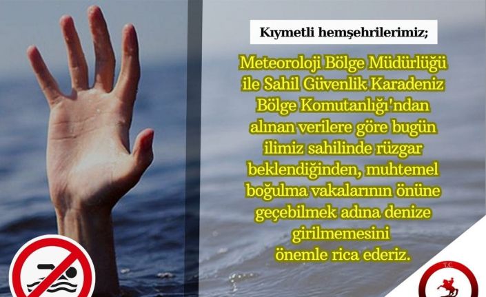 Samsun Valiliği vatandaşlara rüzgarlı havalarda denize girmemeleri uyarısında bulundu.