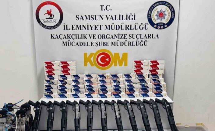 Samsun’da polis tarafından düzenlenen operasyonda çok sayıda ruhsatsız pompalı tüfek ve kaçak makaron ele geçirildi.