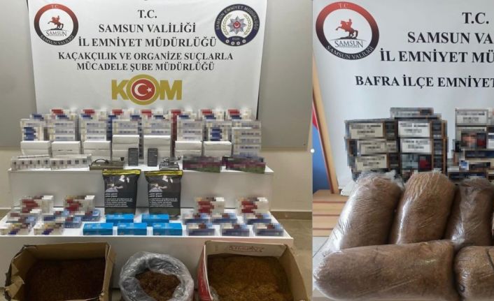 Samsun’da polis tarafından kaçak tütün mamulleri ele geçirildi.