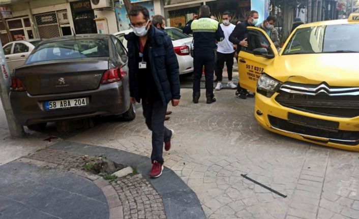 Samsun’da meydana gelen trafik kazasında ticari taksiye çarptıktan sonra kaldırıma çıkan otomobilin çarptığı yaya yaralandı.