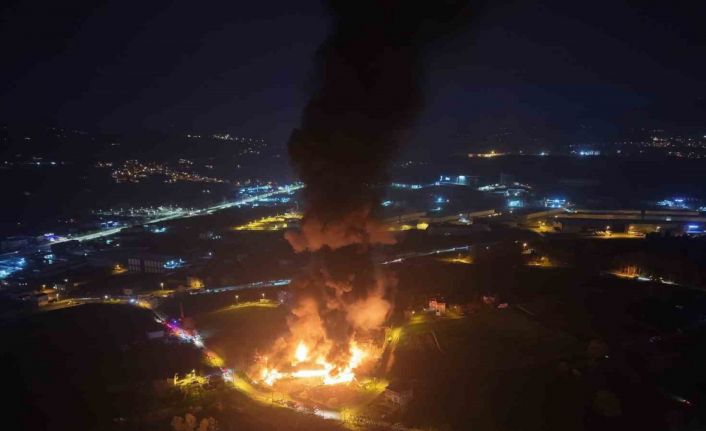 Samsun’un İlkadım ilçesinde çıkan muz deposu yangını dron ile havadan görüntülendi. Alevlerin sardığı depo, ortaya çıkan yoğun duman ve alevlerle dikkat çekti.