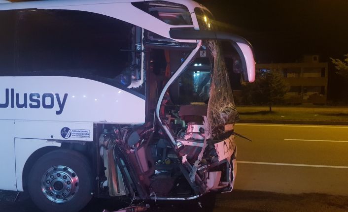Olay, Samsun’un Terme ilçesi Yalı Mahallesi’nde saat 01.00 sıralarında meydana geldi. Alınan bilgiye göre, Samsun - Ordu karayolunda seyir etmekte olan Mehmet Şimşek (48) hâkimiyetindeki 61 S 1262 plakalı otobüs, dinlenme tesisinden karayoluna çıkan Salim Sabah idaresindeki 61 ACD 811 çekici, 61 ACH 313 dorse plakalı kereste yüklü tırın römorkuna arkadan çarptı. Kazada otobüsün ön kısmı büyük hasar alırken, otobüste bulunan Mehmet Karademir (53) hafif yaralandı. Yaralı şahıs olay yerine sevk edilen sağlık ekipleri tarafından Terme Devlet Hastanesi’ne kaldırıldı. Seyir edemez haldeki otobüste bulunan yolcular, firmanın başka bir otobüsüne nakledilerek yolculuğa devam ettiler.