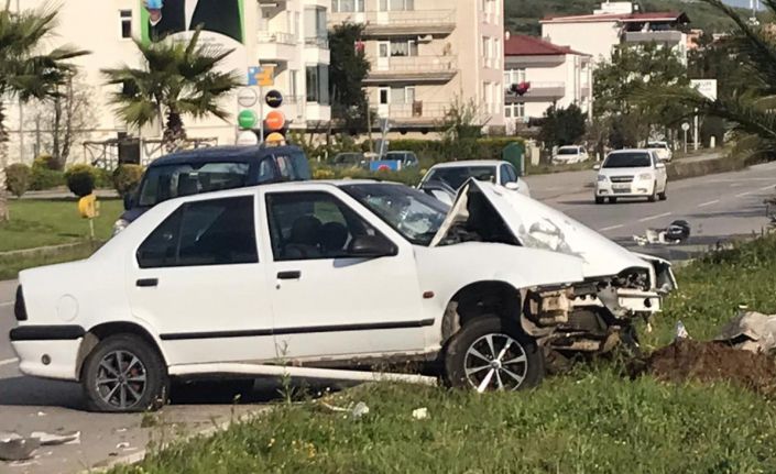 Samsun’da yoldan çıkan otomobilin refüjdeki aydınlatma direğine çarptığı kazada 1 kişi yaralandı.