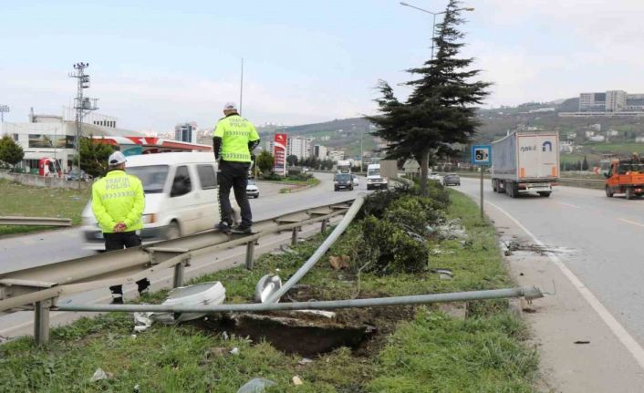 Kaza sonrası refüjde yıkılan ağaç ve aydınlatma direğini polis ekipleri kontrollü bir şekilde güvenli bölgeye çekerken, kazaya karışan araç ise çekici ile kaldırılarak trafik akışının normale dönmesi sağlandı.